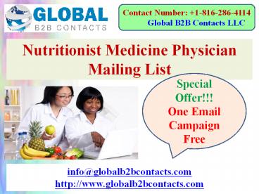 marketing campaigns. - Nutritionist Medicine Physician Mailing List from