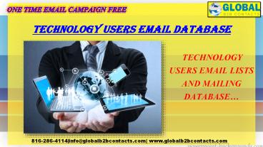 The Technology Users Mail List provided by Global B2B Contacts provides consistent and complete list of contact information of functional heads and various other department of the industry verticals. We provide the most convenient method to reach out and collaborate with global business and achieve your business goals easily. Our partners who seek services are from Telecommunications, Defense, Aerospace, Healthcare, Engineering, Finance and much more. – PowerPoint PPT presentation