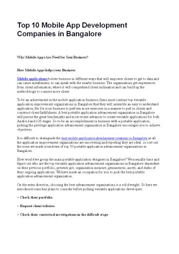 Title: Top 10 Mobile App Development Companies in Bangalore