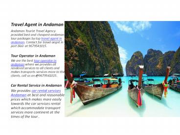 We are the best tour operator in andaman where we provides all rendered services to all clients and makes transports services more to the clients. call us on _at_9679541015.