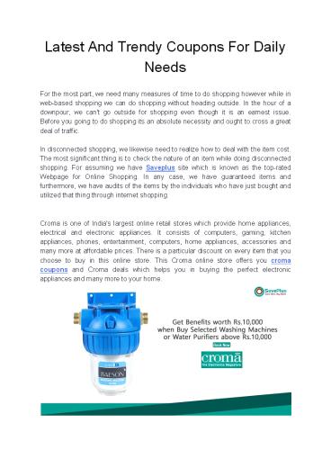 Title: Latest And Trendy Coupons For Daily Needs