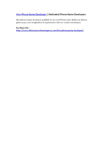Title: Hire iPhone Game Developer | Dedicated iPhone Game Developers