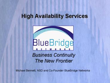 Michael Bennett, NSD and Co-Founder BlueBridge