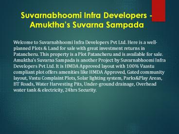 Title: Suvarnabhoomi Realestate company - Open Plots in Hyderabad