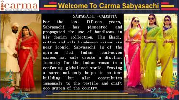 1Welcome To Carma Sabyasachi