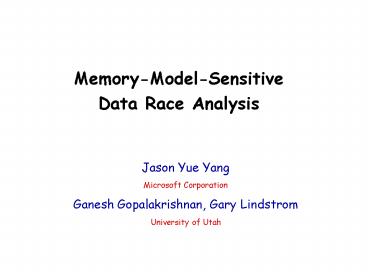 <Notice: Removed> MemoryModelSensitive Data Race Analysis PowerPoint PPT Presentation