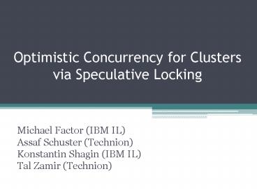 1Optimistic Concurrency for Clustersvia