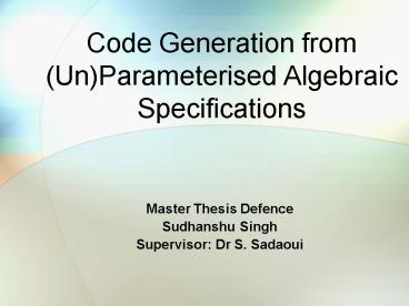Title: Code Generation from UnParameterised Algebraic Specifications