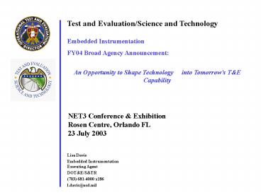 (TE/ST) Program - Embedded Instrumentation (EI) Focus Area