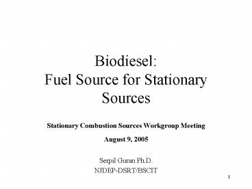 Title: Biodiesel: Fuel Source for Stationary Sources
