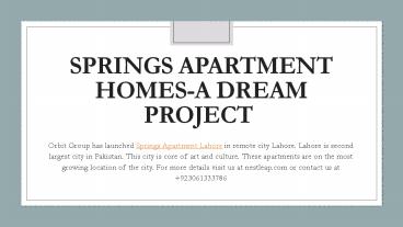 - Orbit Group has launched Springs Apartment Lahore