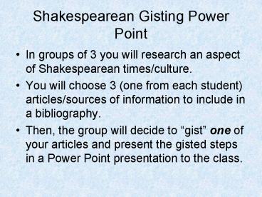 <Notice: Removed> Shakespearean Gisting Power Point PowerPoint PPT Presentation