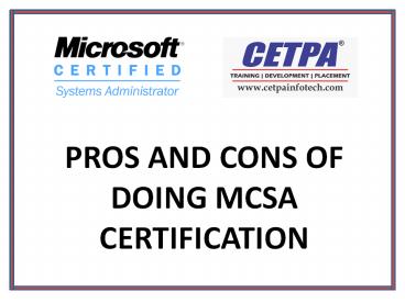 Title: Pros And Cons Of Doing MCSA Certification