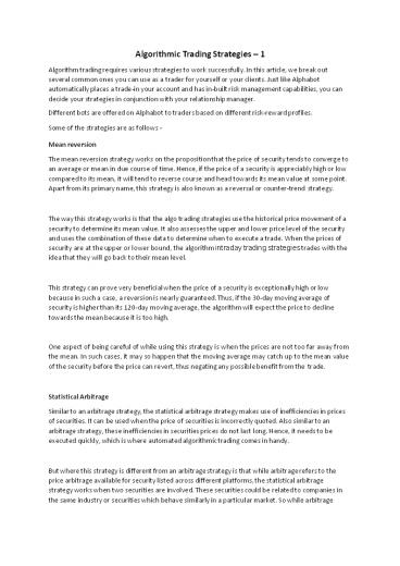 1Algorithmic Trading Strategies 1 Algorithm
