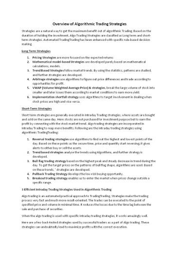 Overview of Algorithmic Trading Strategies PowerPoint PPT Presentation