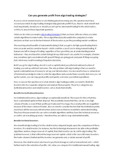 1Can you generate profit from algo trading