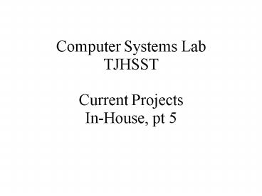Title: Computer Systems Lab TJHSST Current Projects InHouse, pt 5