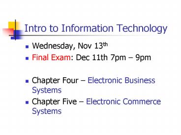 Title: Intro to Information Technology