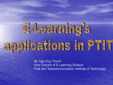 Mr. Ngo Duy Thonh Vice Director of E-Learning