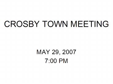 CROSBY TOWN MEETING PowerPoint PPT Presentation