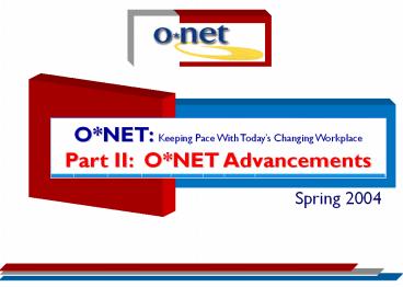 <Notice: Removed> O*NET: Keeping Pace With Today PowerPoint PPT Presentation