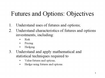 1Futures and Options Objectives