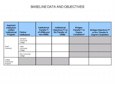 BASELINE DATA AND OBJECTIVES PowerPoint PPT Presentation