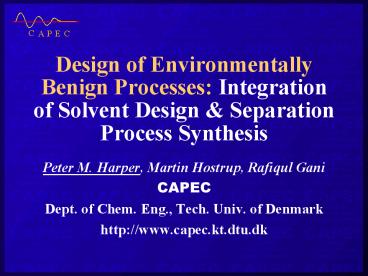 Title: Design of Environmentally Benign Processes: Integration of Solvent Design