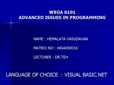 LANGUAGE OF CHOICE VISUAL BASIC.NET
