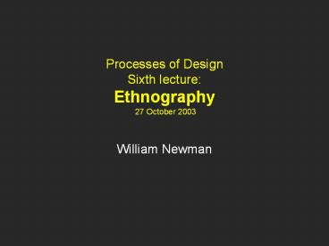 Title: Processes of Design Sixth lecture: Ethnography 27 October 2003