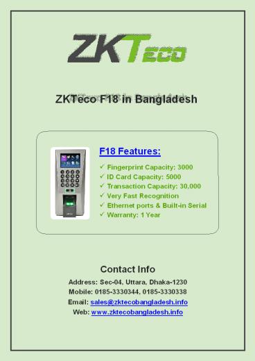 1ZKTeco F18 in Bangladesh