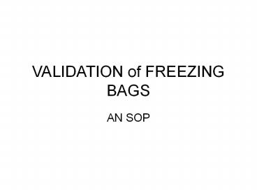 <Notice: Removed> VALIDATION of FREEZING BAGS PowerPoint PPT Presentation
