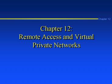 Chapter 12: Remote Access and Virtual Private Networks PowerPoint PPT Presentation