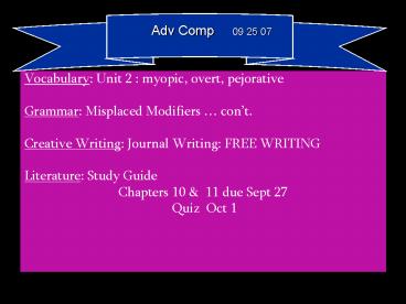 Vocabulary: Unit 2 : myopic, overt, pejorative PowerPoint PPT Presentation