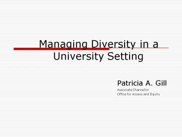 Managing Diversity in a University Setting PowerPoint PPT Presentation
