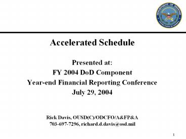 • Oct 21 ODCFO provides draft FY 2004 PAR to OSD