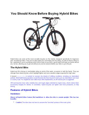 expected for high rates. - A decent hybrid bike is worked to oversee city