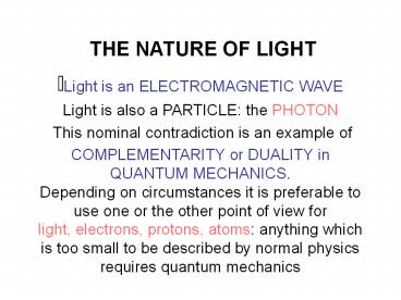 Title: THE NATURE OF LIGHT