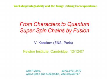 - V. Kazakov (ENS, Paris)