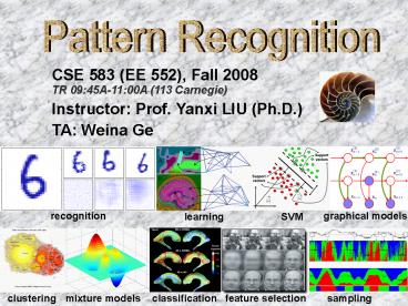 CSE 583 (EE 552), Fall 2008. TR 09:45A-11:00A (113 Carnegie) Instructor: Prof. Yanxi LIU (Ph.D. ... TA: Weina Ge. Pattern Recognition. recognition. graphical ... – PowerPoint PPT presentation