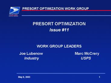 PRESORT OPTIMIZATION PowerPoint PPT Presentation