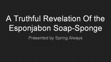 Title: A Truthful Revelation Of The Esponjabon Soap Sponge
