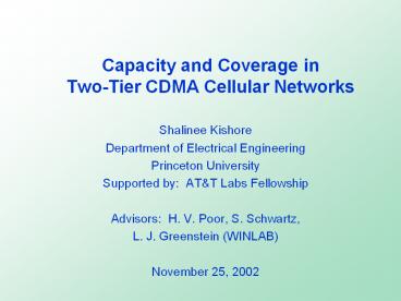 Title: Capacity and Coverage in Two-Tier CDMA Cellular Networks