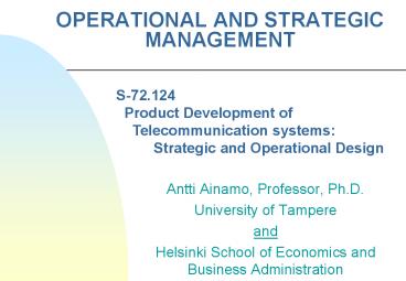 Title: OPERATIONAL AND STRATEGIC MANAGEMENT