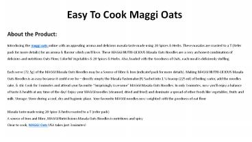 each meal is deliciously stuffing. - Each serve (72.5g) of the MAGGI Masala Oats