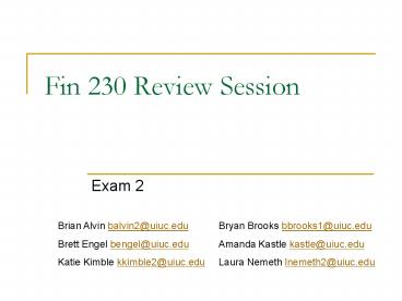 Title: Fin 230 Review Session
