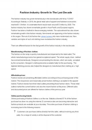 There are different factors for the fast growth of the fashion industry in the last decade.