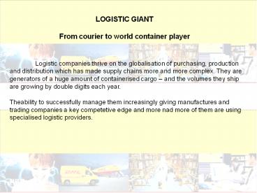 1LOGISTIC GIANT From courier to world container