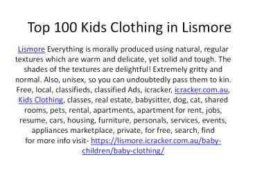 Lismore Everything is morally produced using natural, regular textures which are warm and delicate, yet solid and tough. The shades of the textures are delightful! Extremely gritty and normal. Also, unisex, so you can undoubtedly pass them to kin. Free, local, classifieds, classified Ads, icracker, icracker.com.au, Kids Clothing, classes, real estate, babysitter, dog, cat, shared rooms, pets, rental, apartments, apartment for rent, jobs, resume, cars, housing, furniture, personals, services, events, appliances marketplace, private, for free, search, findfor more info visit- https//lismore.icracker.com.au/b aby-children/baby-clothing/