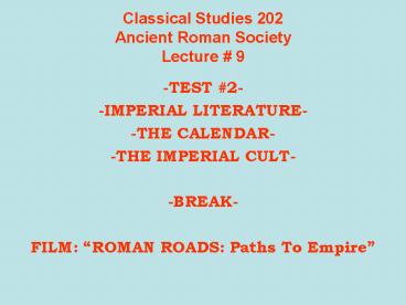 Title: Classical Studies 202 Ancient Roman Society Lecture